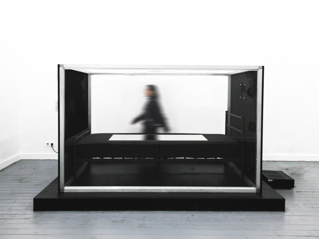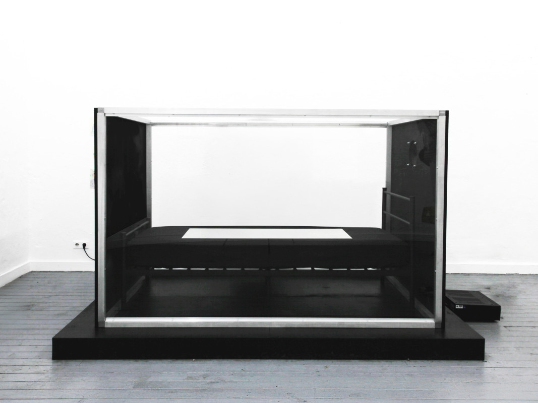 Speaker, Mirror, Metall bed, Aluminum, Stainless steel, Acrylic glass, Sound : Recorded sounds of city, sea, wind, forest, silence and undersea