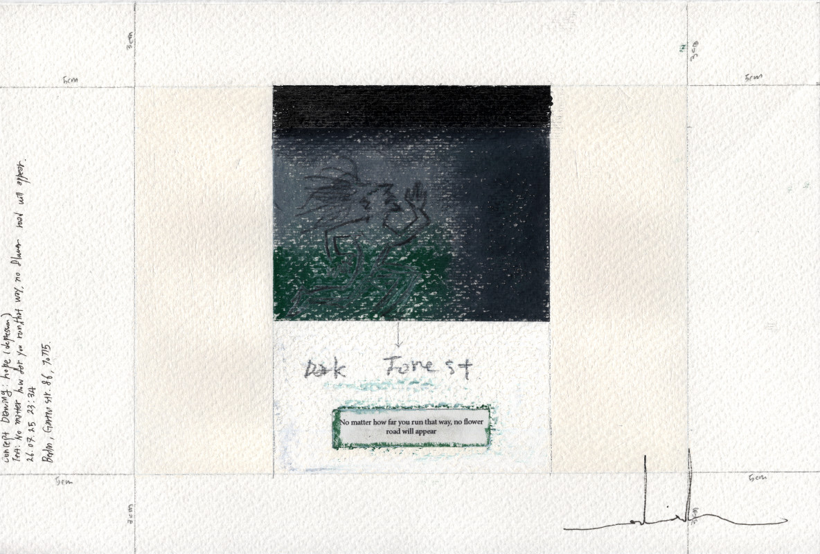 hahnemuhle paper 300g, oil pastel, acryl paint, spray, transparent paper