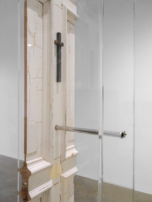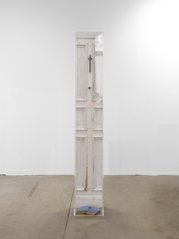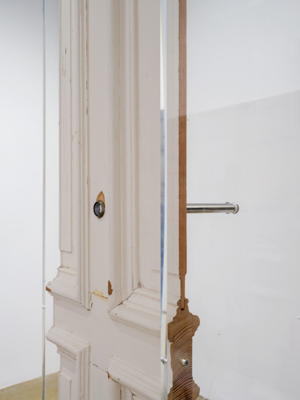 1900s vintage Berlin door, 1930s Hermann Hesse‘s Narziss und Goldmund, acrylic box, mirror-polished stainless steel, door viewer, stainless steel, steel, brass