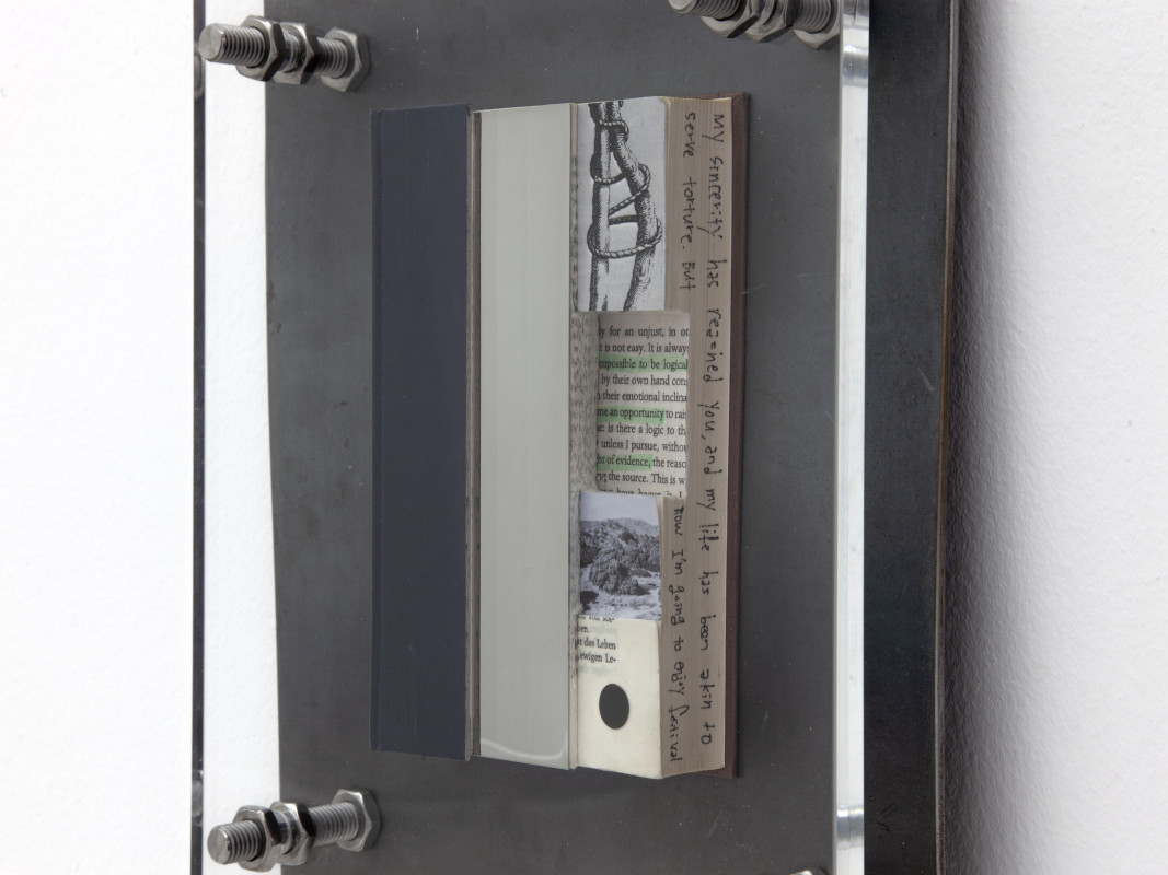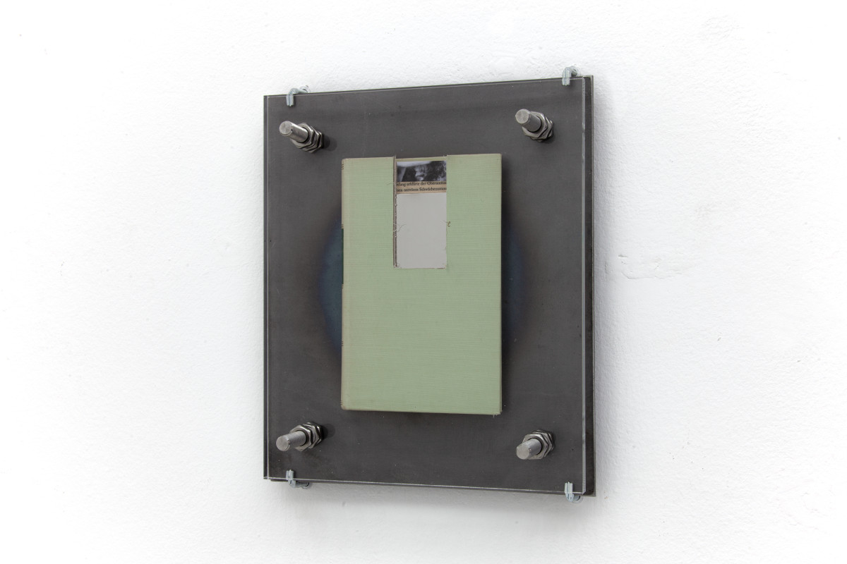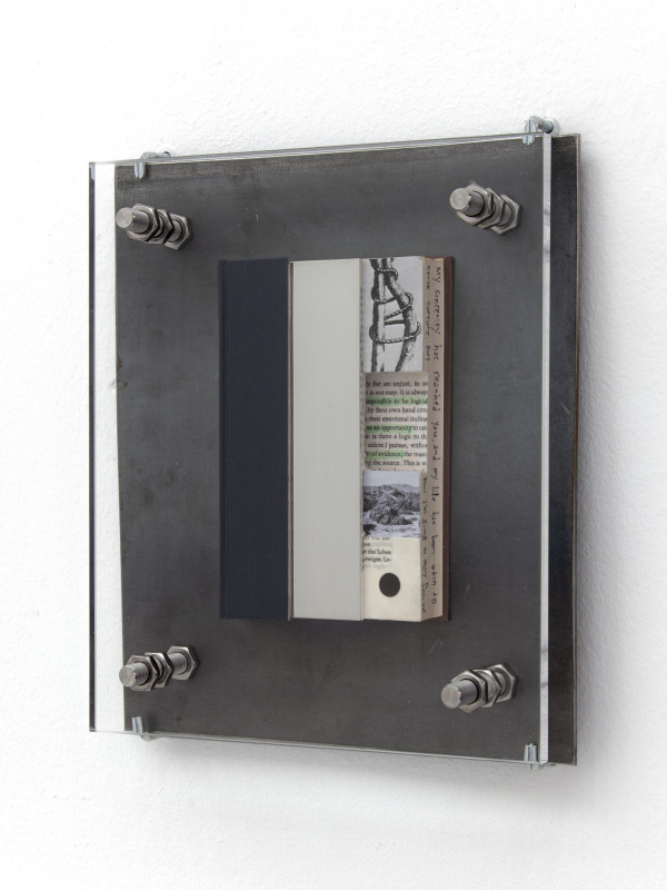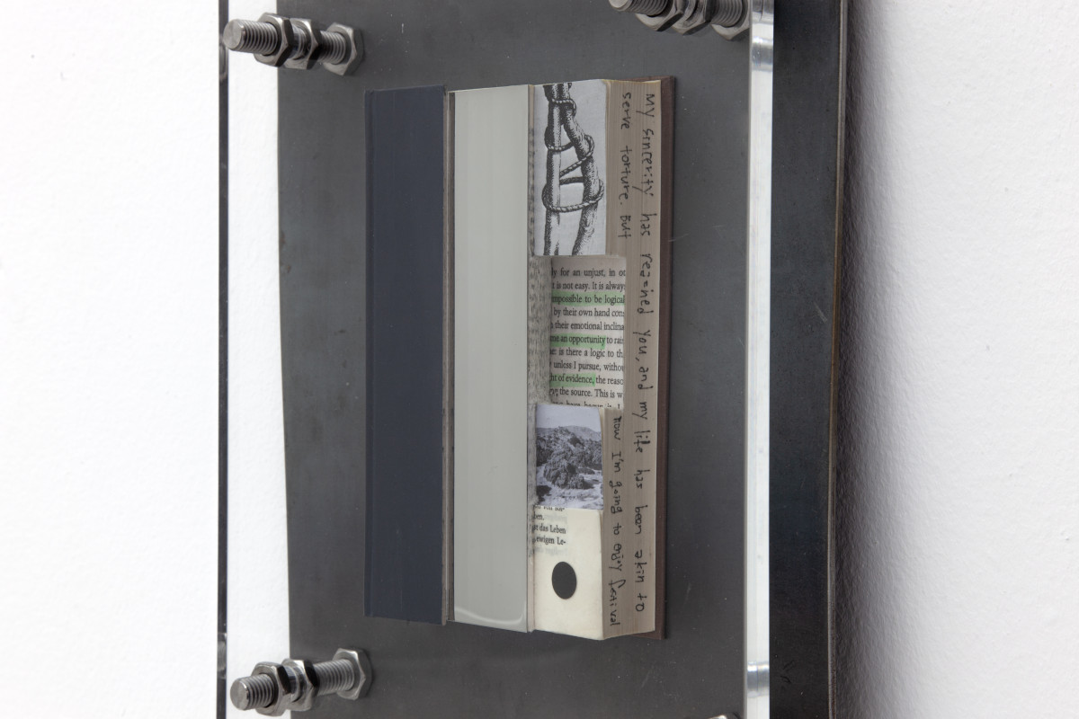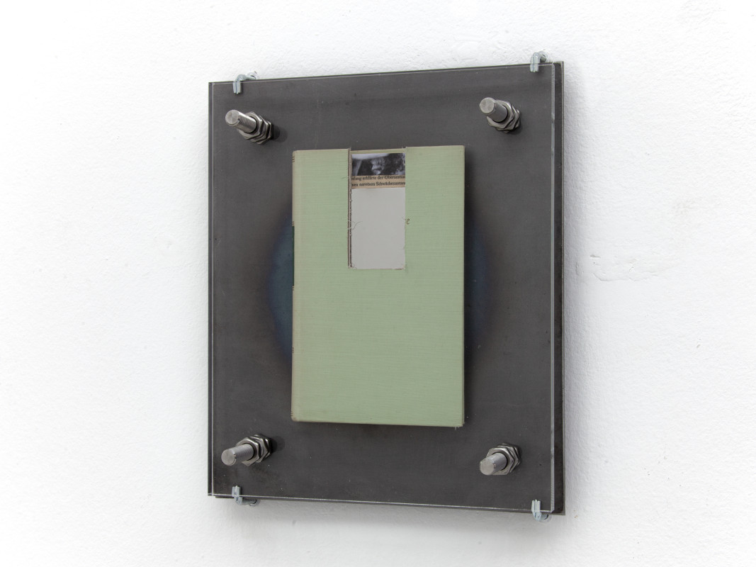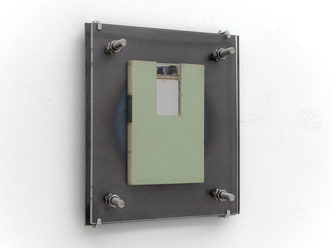 Plexiglass, Steel, Stainless steel, Industrial PUR, The Glass Bead Game by Hesse, The Myth of Sisyphus by Camus,Thus Spoke Zarathustra by Nietzsche, Discipline and Punishment by foucault, Beneath the Wheel by Hesse, Image of Sisyphus painting by Titian,Portrait of Albert Camus