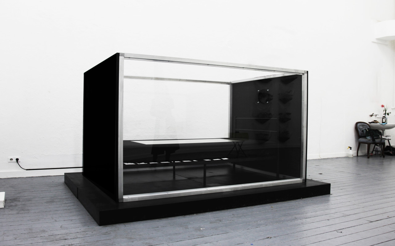 Speaker, Mirror, Metall bed, Aluminum, Stainless steel, Acrylic glass, Sound : Recorded sounds of city, sea, wind, forest, silence and undersea