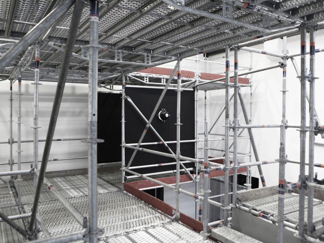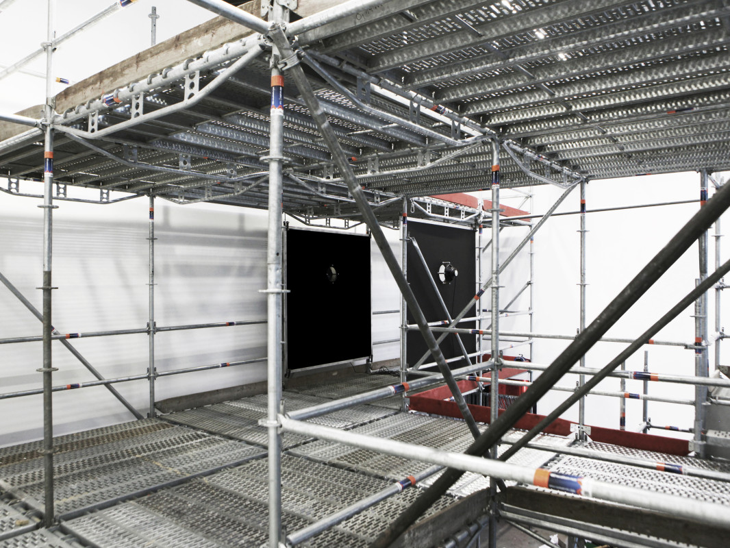 Black MDF, stainless steel, Aluminum, speaker, Cable, Sound : Recorded sounds of Construction sound with symbolic pop-songs of period and Techno
