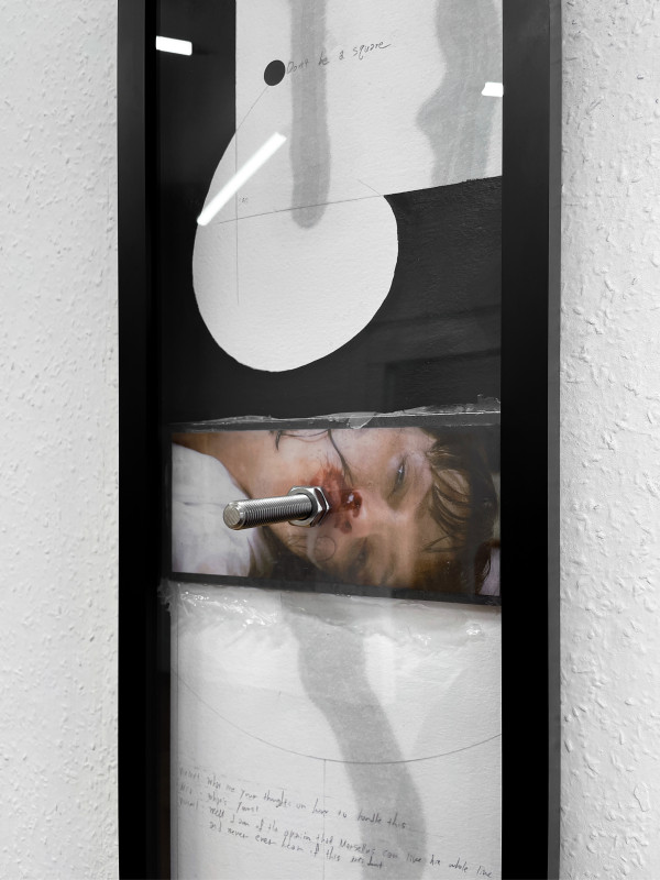 Construction metal plate, Oil, Industrial PUR, Paper tape, Acrylic paint, Fortune cookie paper, Hahnemühle paper, Stainless steel, Bolt and Nut